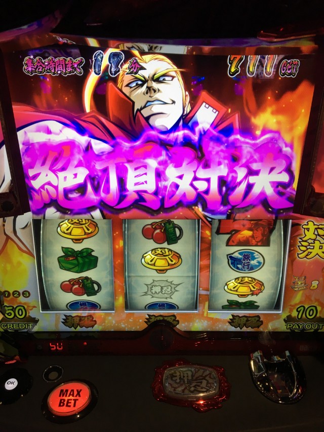 対決中「あ~ん」発生時に左リールに2連7を狙い、中リールに弁当こぼすつもりで2連7をびしっとw