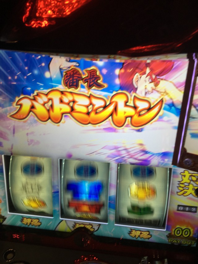 番長ボーナス中に枠上金7停止で赤7揃い1確でございます
