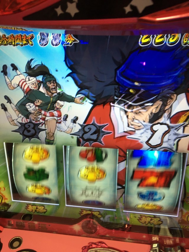 RBカウントが上がっていないので番長ボーナスでベルを稼いで対決ガンガンやったとは考えずらく、初当たりでループが取れているならワンチャンスあると思い着席