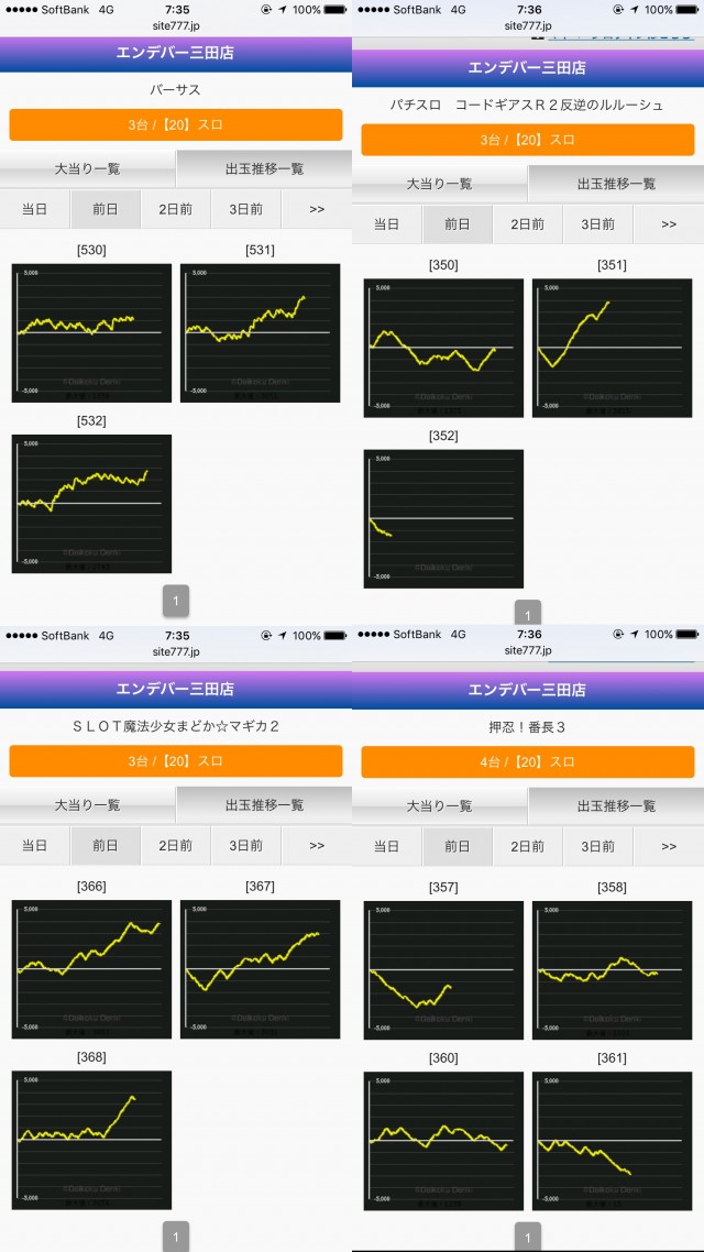 閉店後のデータはザックリこんな感じでした、帰った後も伸びきっている台が多いですね。