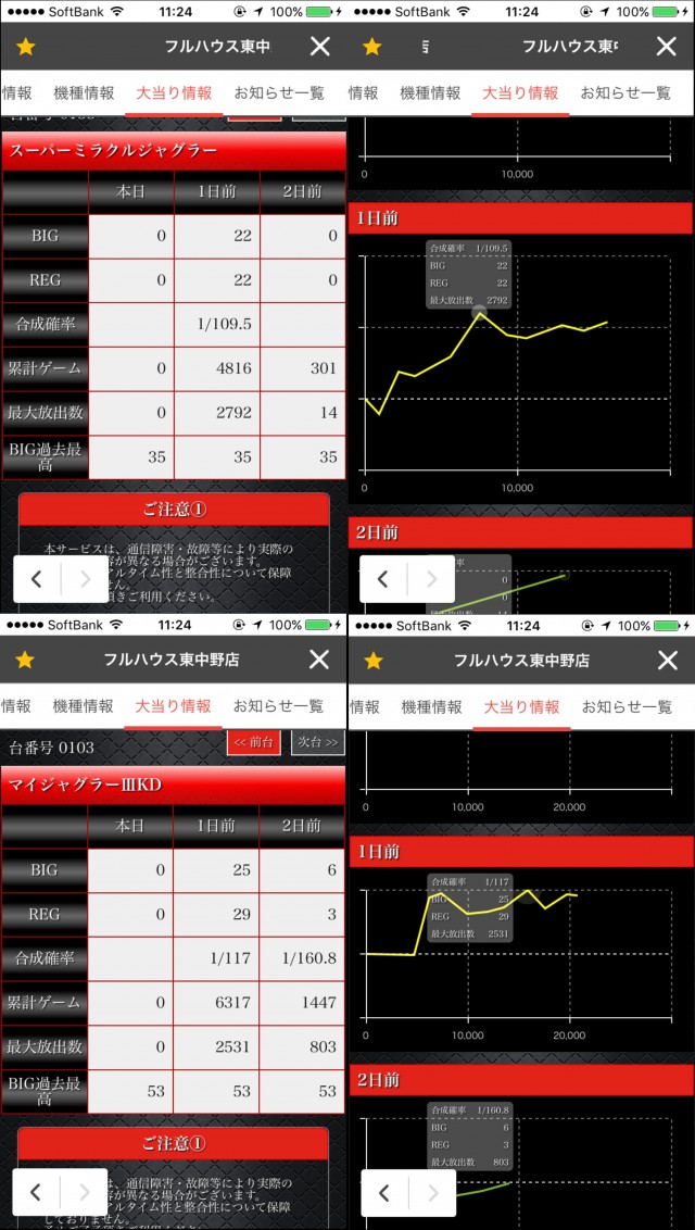 台数少ないながらもしっかりと高設定が見えてくる、ジャグラーも何だかんだ高設定履歴がいるお店ですね。