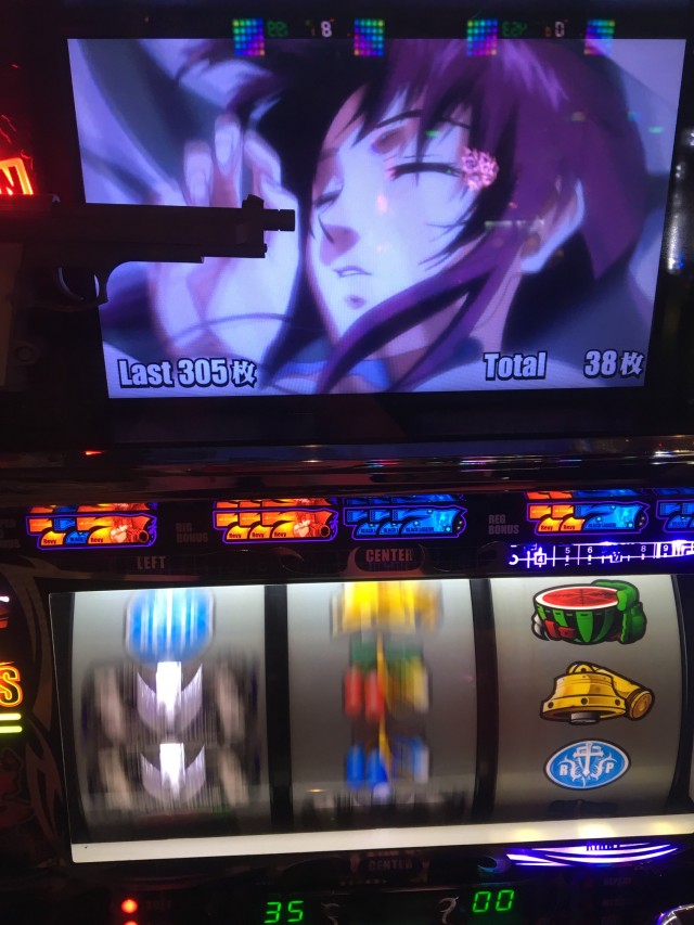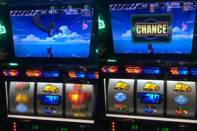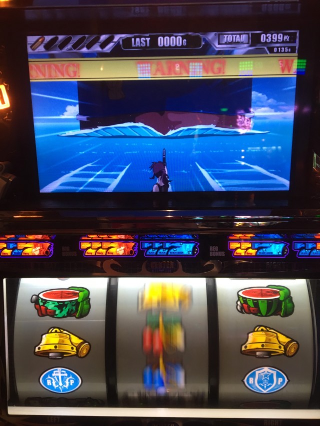 ボーナス中逆押しで上段スイカでハズレ1確なのでバレットバトル確定!