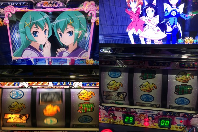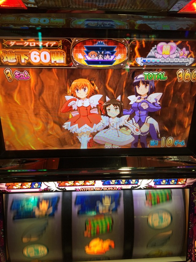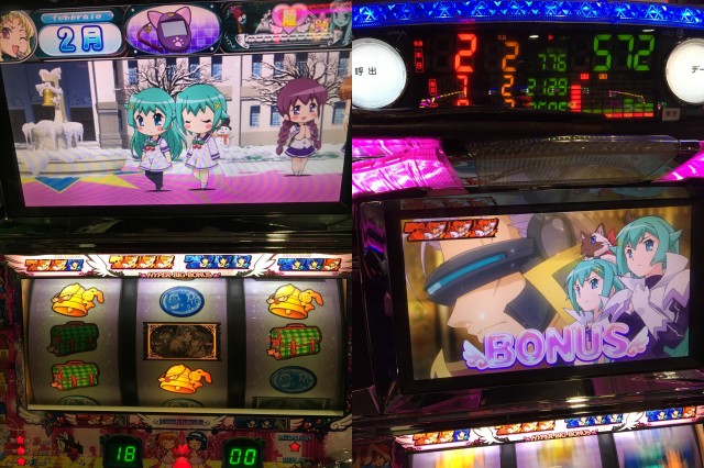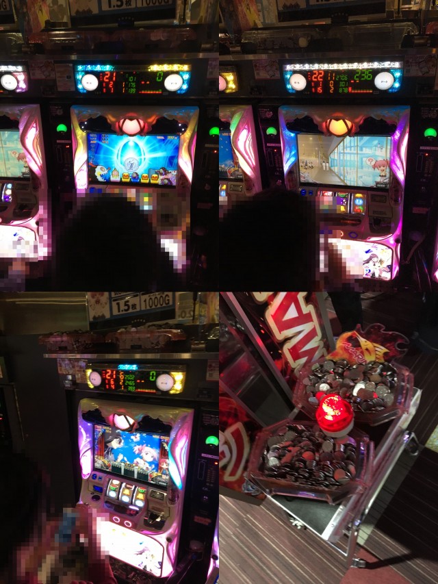 全台系はおそらくまどか2なのですが、左右にある番長3と化物語も高設定挙動で粘られており、5台並びで強くなっていました。