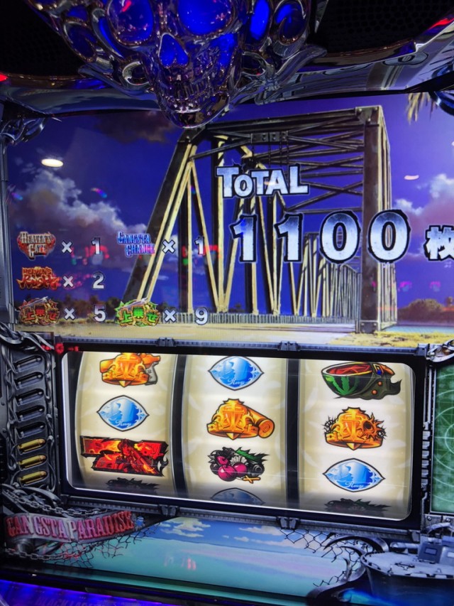 一発目のチャンスはバラライカステージ(高確濃厚)で引いたチャンス目からスカルシステムへ行きギャングスタバトル(前作で言うバレバト)へ当選