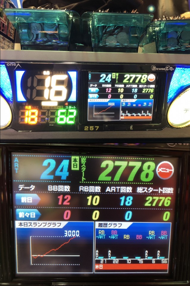 その後は少しジャグラーを触ろうと思い3台ほどカニ歩いた所で・・・