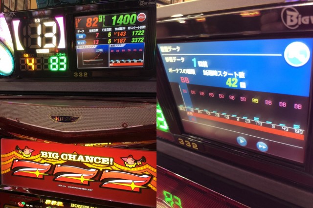とんでもなく綺麗なグラフを描いていますが、判別要素的には低設定の数値に。