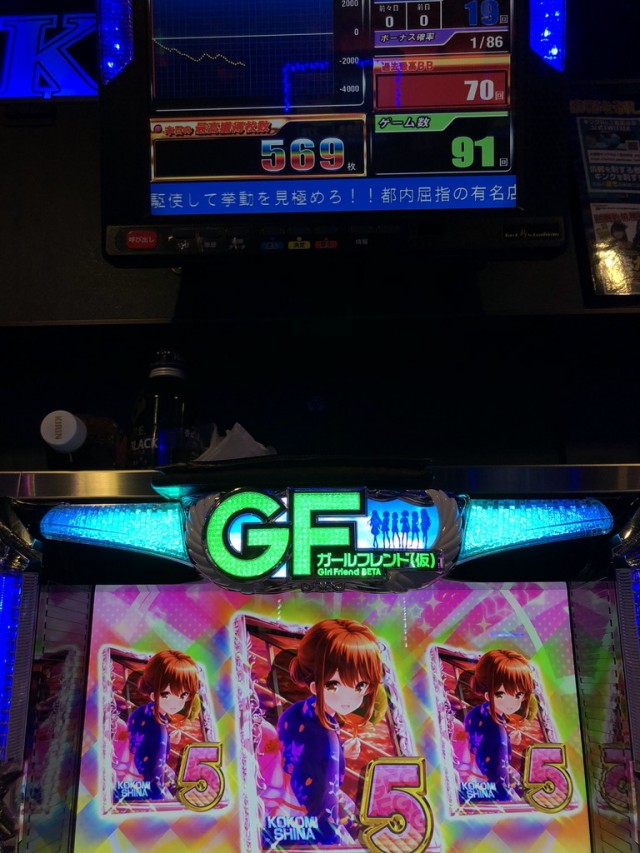 店内では末尾9と乙女2が怪しくなりだしたタイミングで目の前で動いていたガールフレンドが天国移行しているのを確認したので移動!