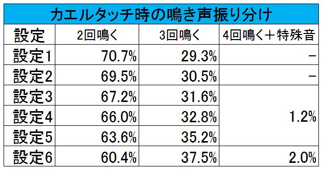 この部分をタッチするとカエルが鳴くのですが、何回鳴くかの方が設定差が多いのでメモるならそちらですね!