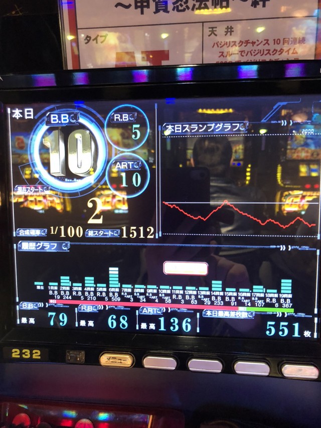 そこから珍しくバジリスク絆へ、1台はこぜ6な台がいたのですが履歴を見ると