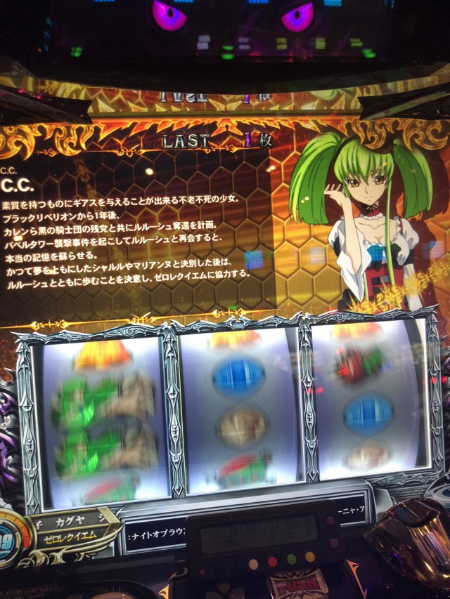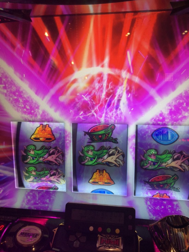 チャンス目の次Gに左リール中段にC.C.図柄を狙ったらこれもん