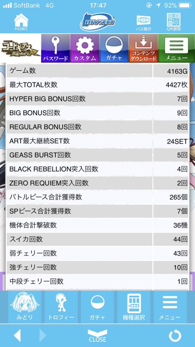 ギアスは僕とは逆サイドの台が強かったですね、展開に恵まれずマイナスでしたがスイカボーナスやRA当選率、引き戻しなど完璧でした。