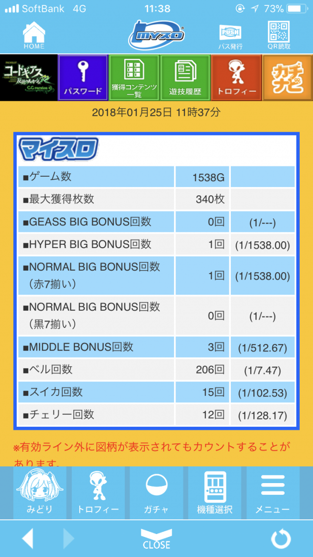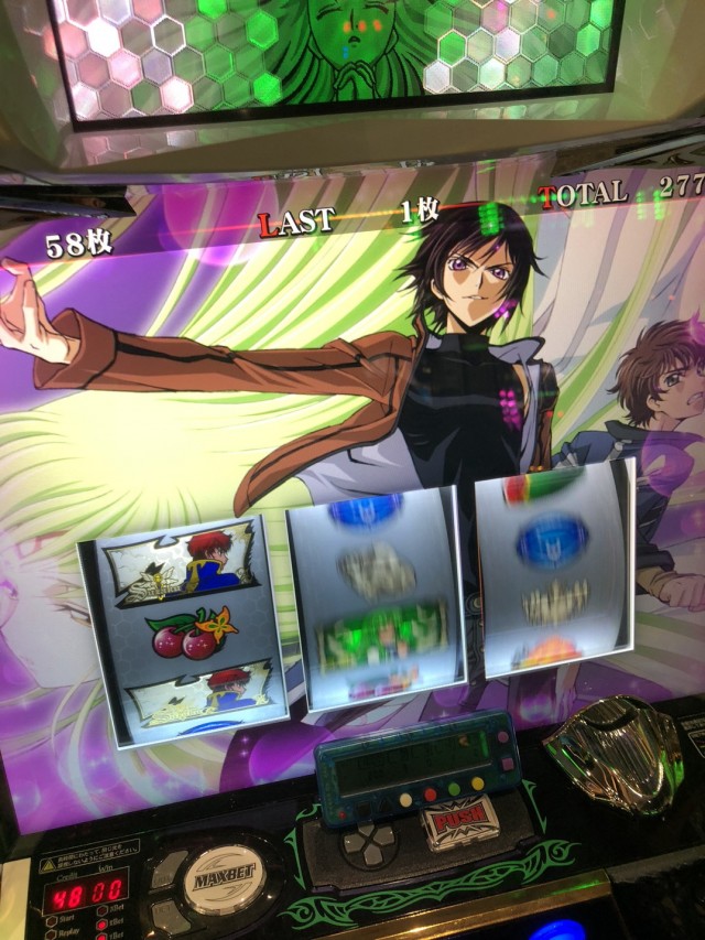 ギアスR2同様ボーナス入場時にプッシュで当選契機が分かりますのでポチッと押しましょう