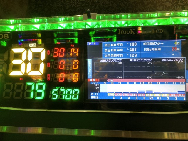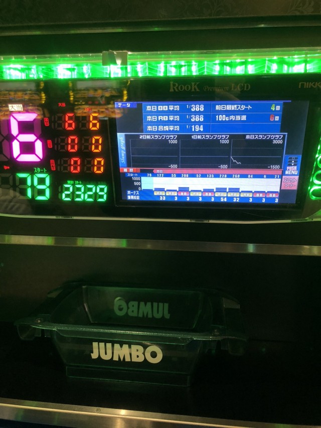 うーむ、初打ちですしもう少し打ちたかったのですが小役とボーナスがあまりにも悪すぎるためヤメ