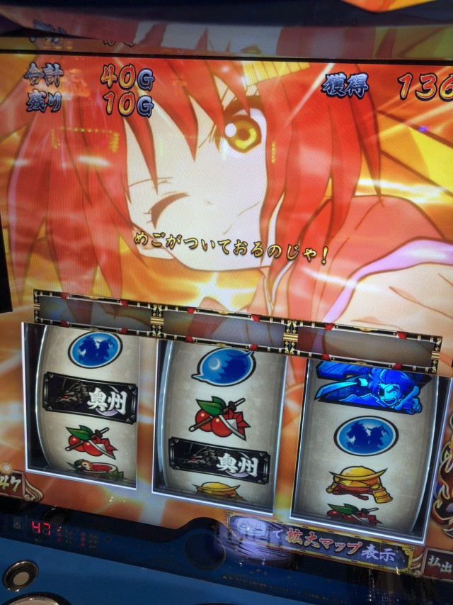ART入るたびに小十郎にも入るので手ごたえは十分でこの画面、設定3以上確定なのですが