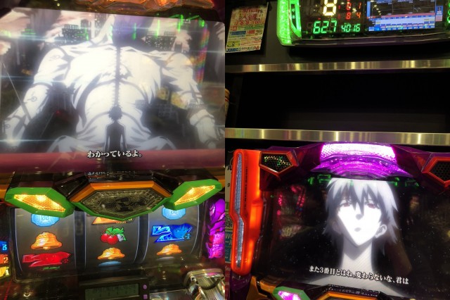 まずはエヴァシリーズ、エヴァ魂は全台456確定演出が出ており、エヴァまご2は一番凹んでいる台から456確が出ており
