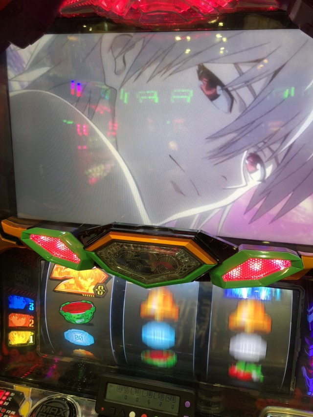 初当たりは1枚役から、下段ベルだと思いポンポン通したけどよく考えたら画面暗転で出撃って液晶出てて下段ベルってw