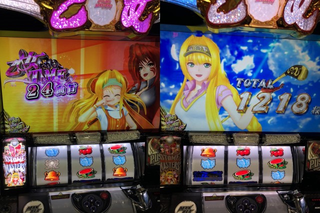 更に乙女マスターズ自体の解析が出揃っていないかつ、横にあるハナビがBB中ハズレ出現かつ挙動がこぜ6だったので離脱しました\(^o^)/