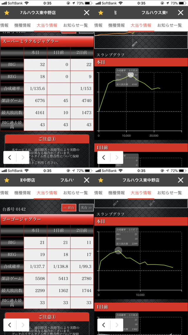 メインの番長やジャグラーなどに毎回閉店時には高設定履歴がありますね!