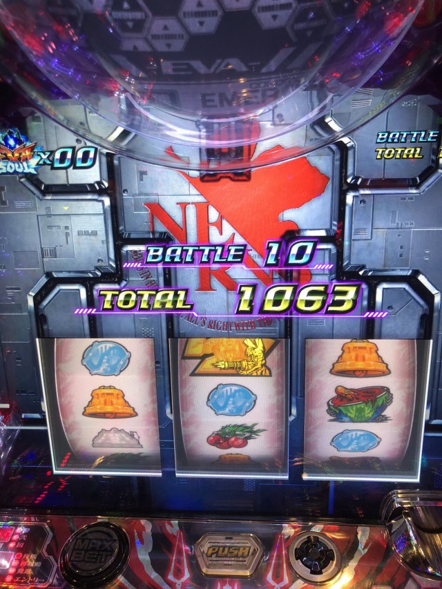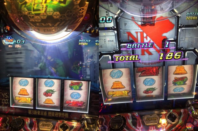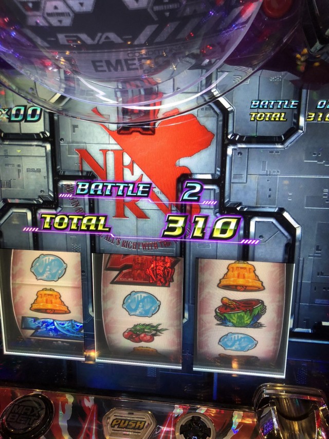 隣はBB中に設定2が出やすいアスカボイスが2回出ているので偶数と考えるとエヴァ勝利の島がALL2という可能性が最有力だったかもしれませんねw