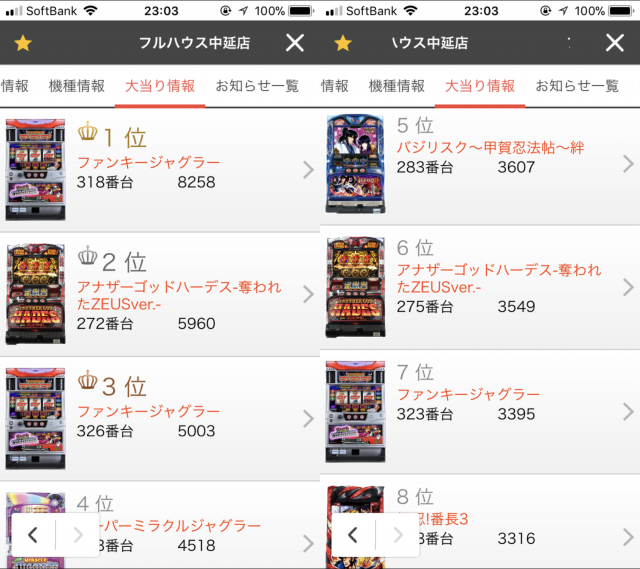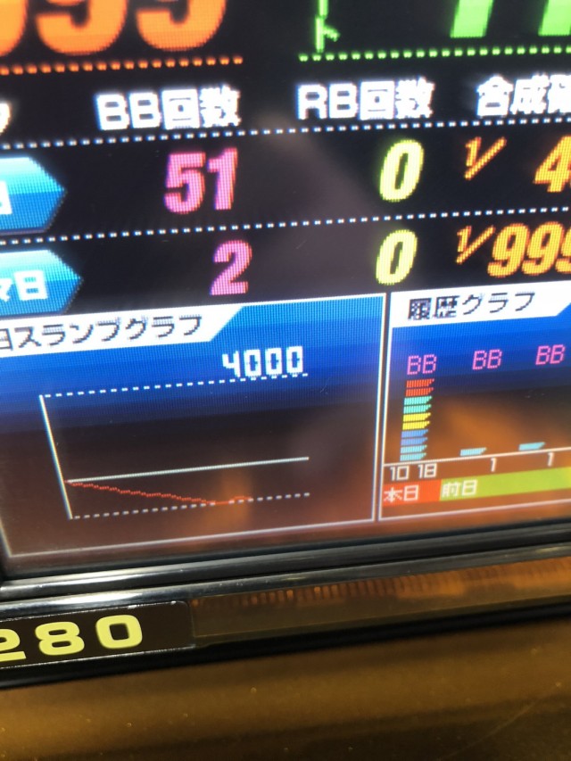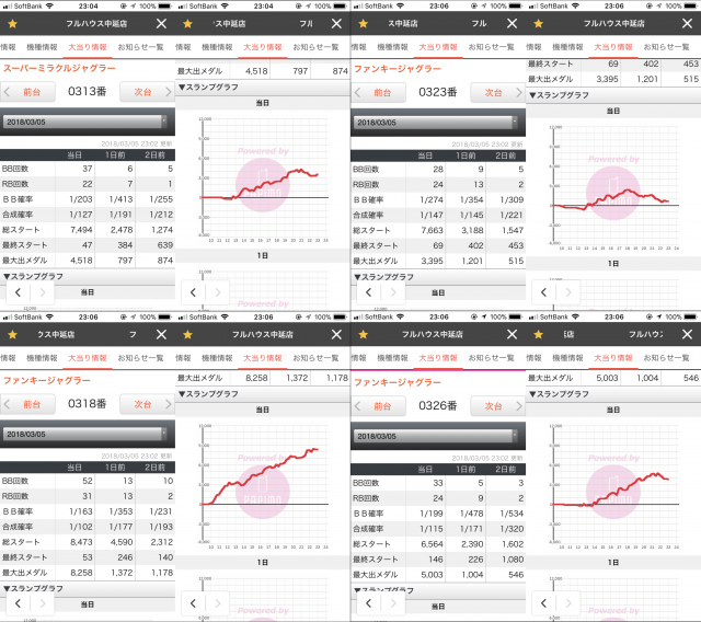 台数少ないお店ですが、毎回番長や絆、ジャグラーへしっかりと当たりが見えているお店ですね!