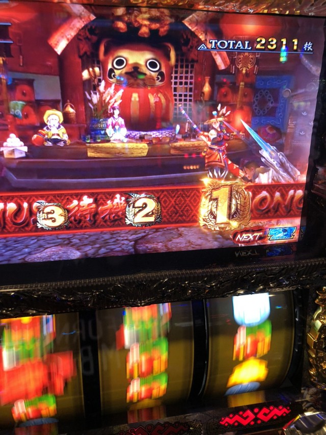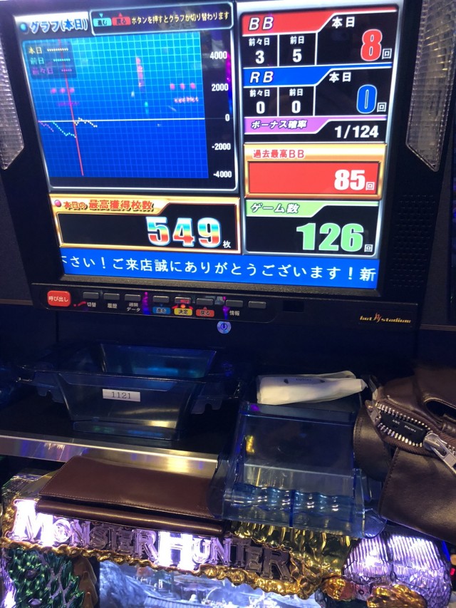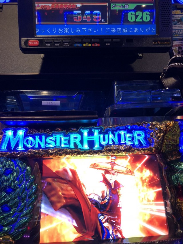 とりあえず政宗は早見切りですがヤメ、まだ空きがある中で探しているとモンハン月下の初当たりが少しおかしいと思い空き台に着席