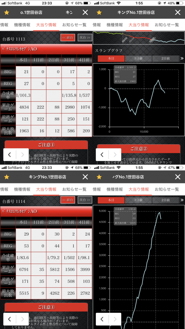 閉店データはこんな感じ、朝のスタート人数が少なく足りていなかった部分もありましたが結果的に綺麗に出ている台が多かったですね。