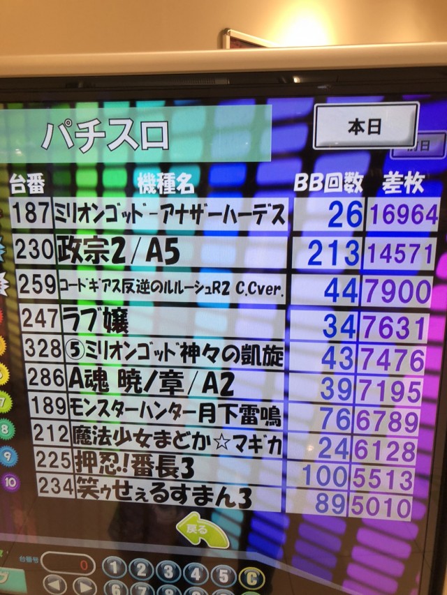 まずは大都系機種!メインの島にある分競争率もありますが突き抜けてる台がありますな。