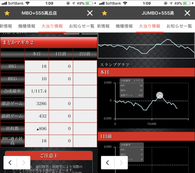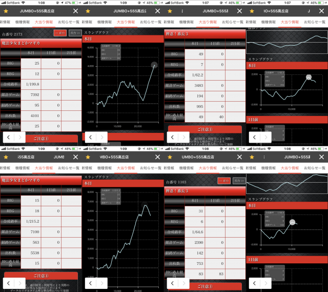 閉店後データはこんな感じでした、まどマギや朝から動いていた台はしっかり最後まで打ち込まれていましたね!