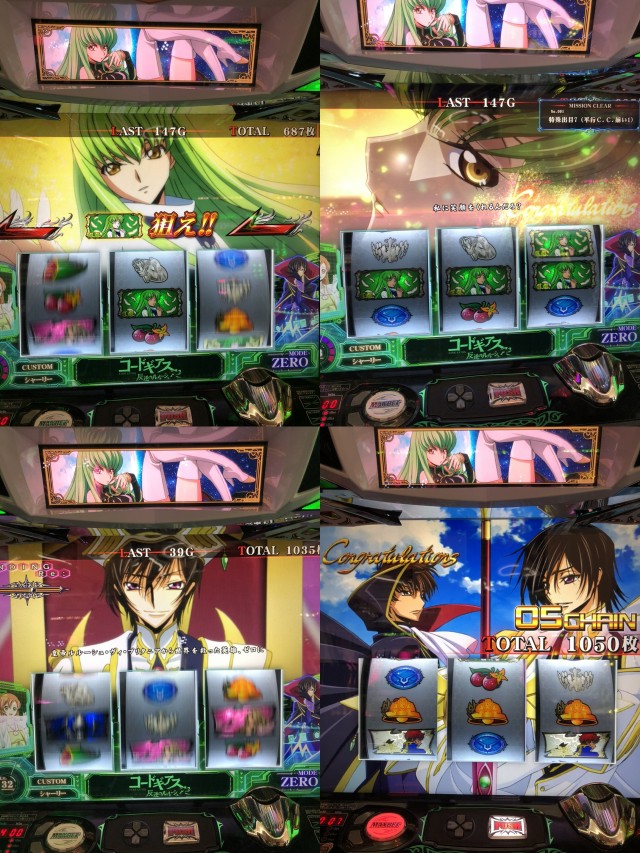 店内はギアスC.C.から56確定やアクロス系ノーマル島が全台強かったり