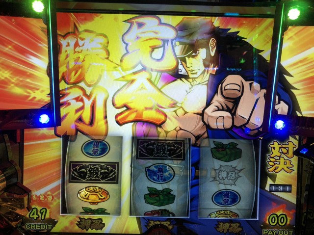 そこから甘デジの蒼天の拳を試しに打ってみると15回転で初当たり