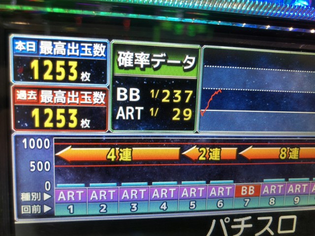 7700発を獲得したところで稼動終了、当たりが丸見えでしたw