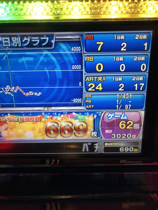 店内は…もう間違いなく番長3が全台系でしたね。7台全プラスの右肩上がりでしたw