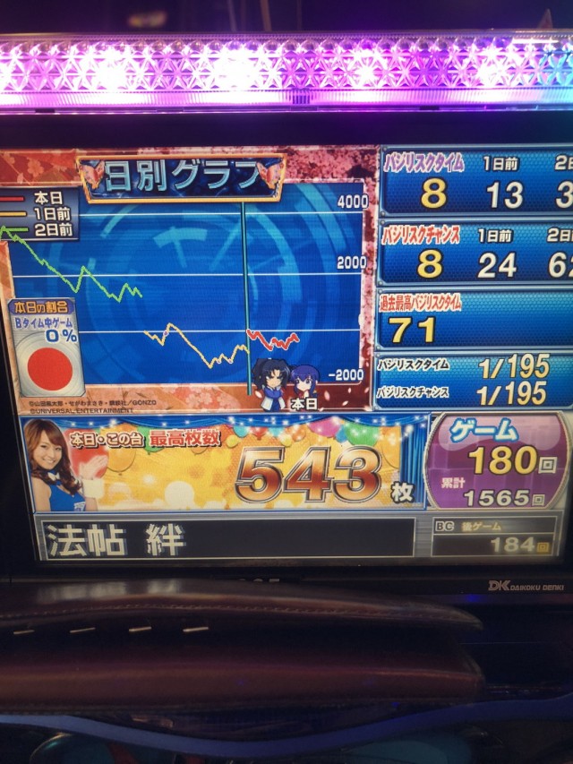 前回番長3の6を後ツモ、メインや少数機種にも当りがしっかりと見えるお店ですね。