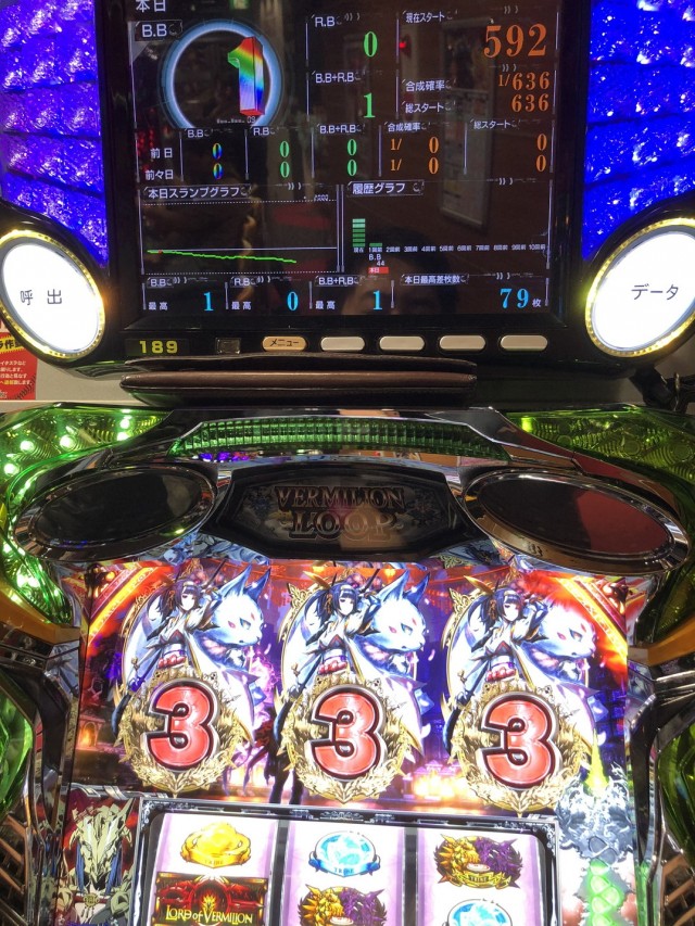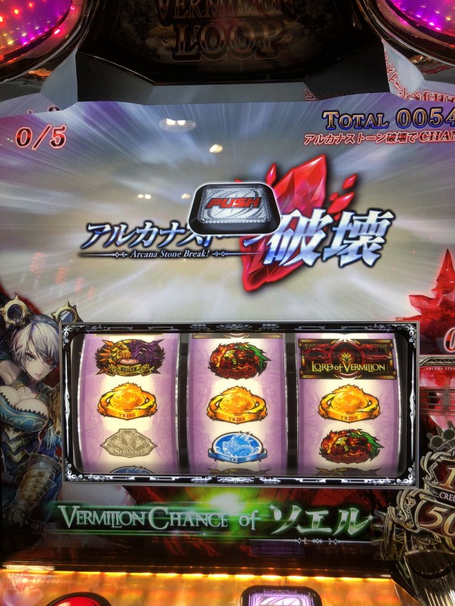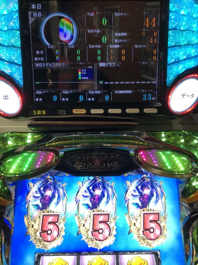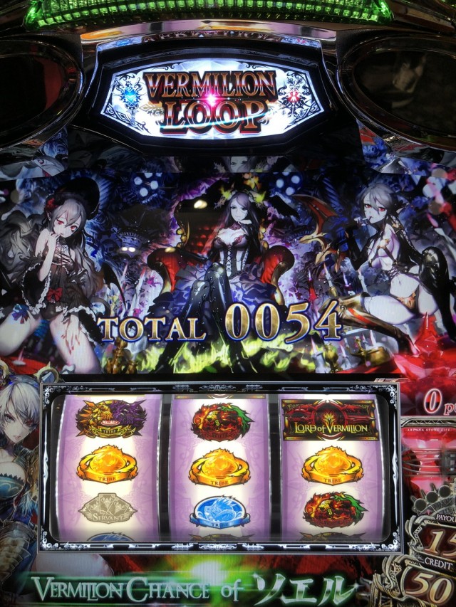 6号機で初の純増5.7枚になったヴァーミリオンが空いていたので打ってみましょ