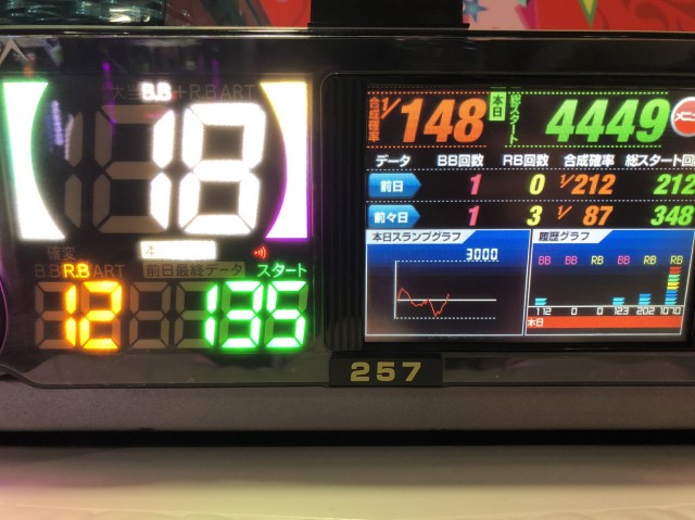 60台のお店ですがメイン機種や少数機種、バラエティやジャグラーに強い台が見えてくるお店ですね。