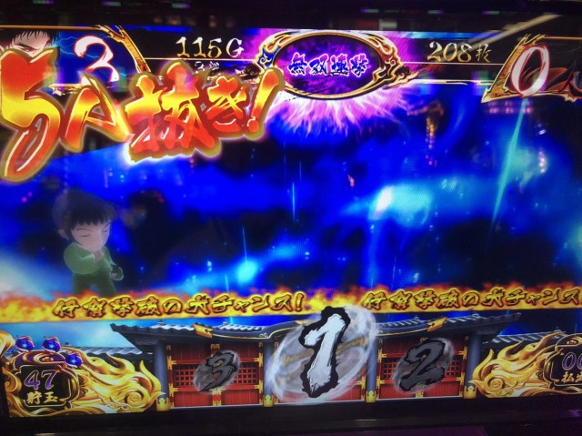 BCテンパイのボイスが弱いのとBT開始時もALL白なのも併せて6はないと判断しヤメ