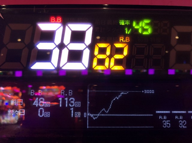 ジャグラーやアクロス系も回数がついておりバラエティも並びで粘られていました。