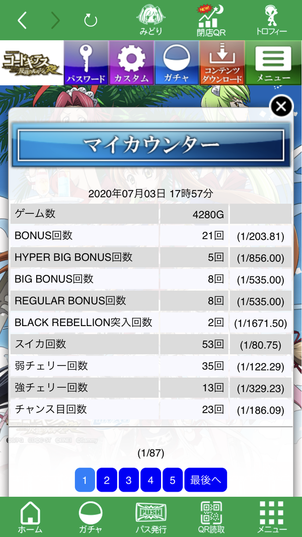 店内はメイン島のマジハロ、星矢、ギアスはいい感じ。3台島のサラ番2も粘られ横にある化物から456確も確認