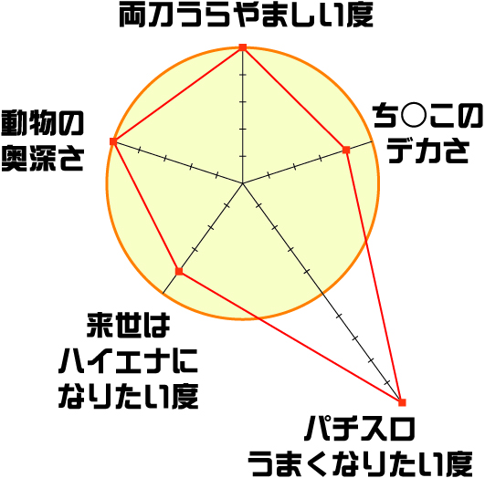 ブチハイエナ2匹が興奮してお互いに勃起している時に、ペニスの先が尖っている方がオス。先端が真っ平らな方がメス。らしいです!(尖ってるの好き!)