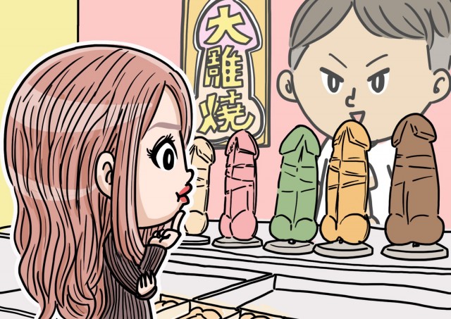 甘い果物のお菓子の他にホットドッグバージョンもあって、ソーセージが入ってるから、まさに見た目も中身もち〇こ。