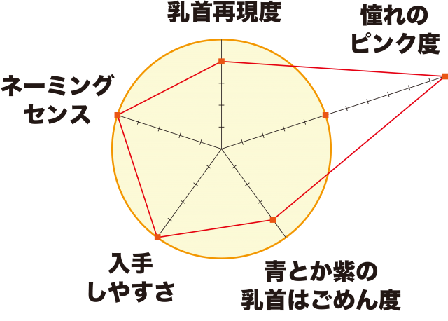 先端の点の色は、ピンク、青、紫があるみたい。まぁ人それぞれ乳首の色は様々だからね! 青とか紫も、アブノーマルでアバタープレイがしたい方にはオススメだね!