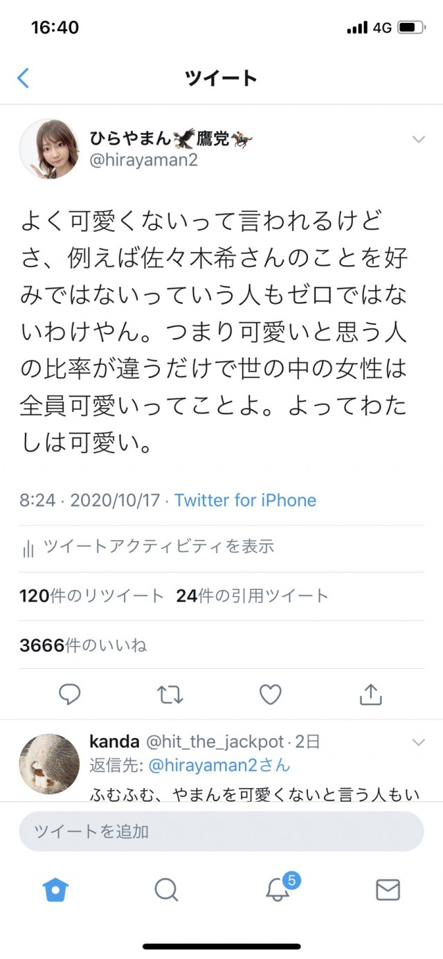 「ひらやまんはかわいいよ。心ないコメント気にしないで」