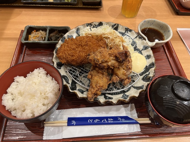 メンチカツと唐揚げ(もちろんしょうゆ味)。