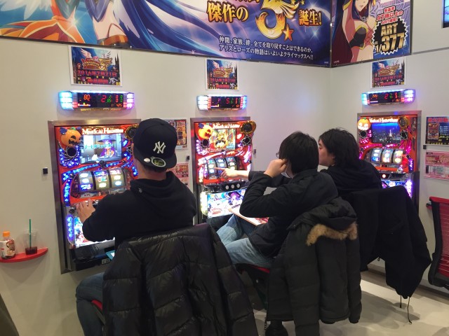 こんな感じで各々黙々とデータを取っていきます。ちなみに左は担当ライターの辻ヤスシさんで、真ん中と右は編集の人です。私は辻さんの左隣で台と格闘しています。