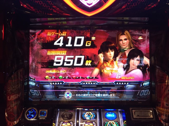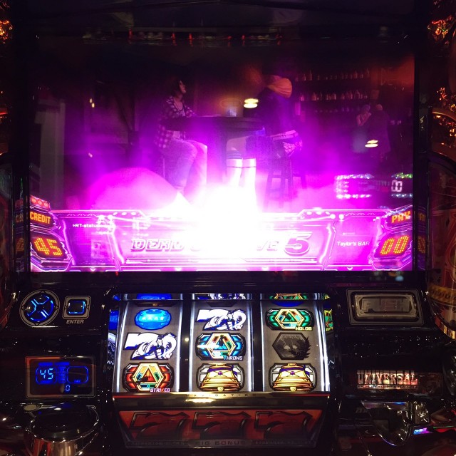 そんなこんなで8月はプライベートで打つ時間があまりなかったのですが、「○○日は打ちに行くので絶対に原稿書きません!」と編集部に断言し、SLOT DEAD OR ALIVE5を打ちに行ってきました。どうしても新台初日に打ちに行きたかったんです(´・ω・`) そして当日、「初日だから台とれるかなあ」なんて若干心配しましたが、台風ど真ん中ということでなんとか台を確保。なんとなく角台に腰をおろして打ち始めました。