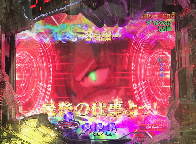 スペックは、1/319のループタイプで確変突入率が60%、時短100回という「これぞヱヴァ!!」って感じの台。