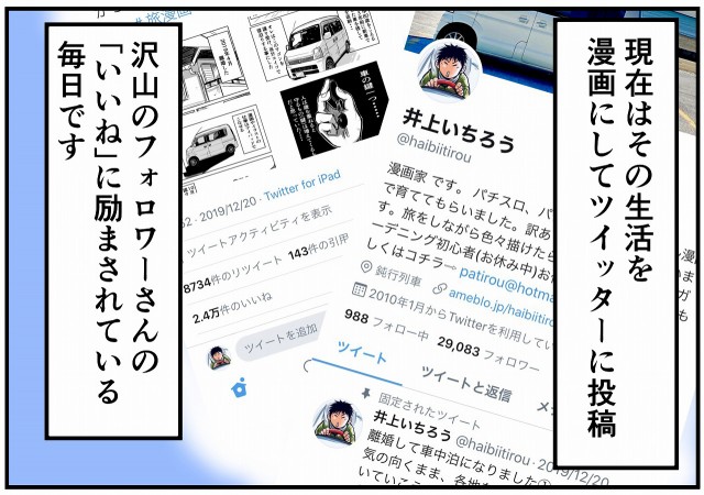 リアルな車中泊生活を描いた漫画をTwitterで公開してバズっている漫画家、井上いちろうがぱちタウンに登場!