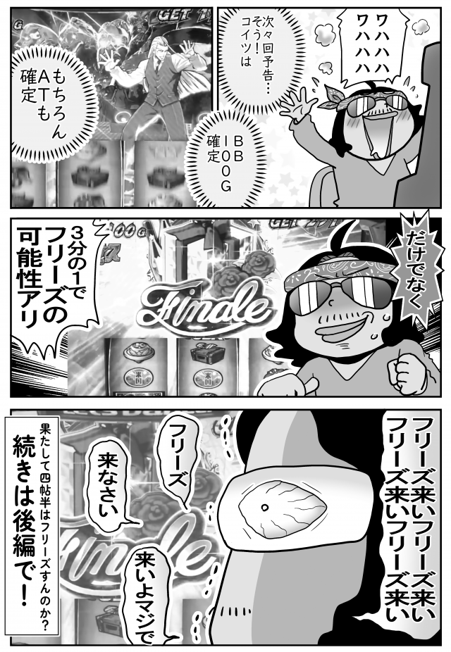 夏の定番冷やし中華を目指してノリ打ちに挑むジャブジャブ3人衆。前回、生まれ変わったと言いながら相変わらずの負けっぷりでドブ色オーラを放っていた四帖半にフリーズチャンスが到来!