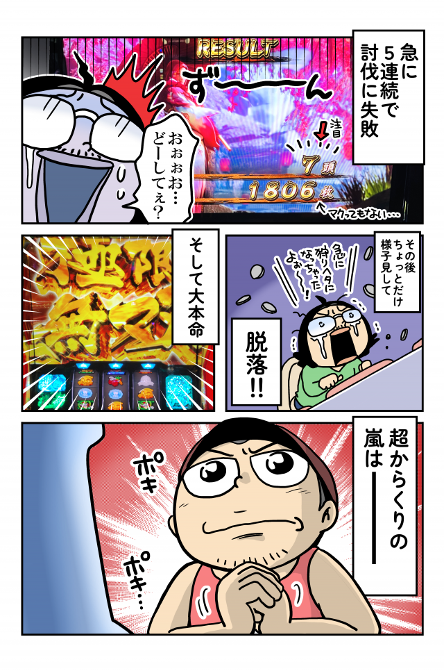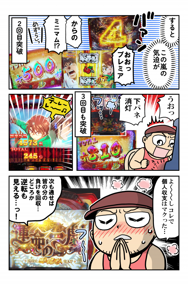 3人全員の思い出の地「新宿」にて始まった今回の実戦。4号機の荒波時代を思い出すようなとてつもない投資金額に全員が勝利をあきらめ、大敗を覚悟したそのとき…。嵐渾身の一劇がさく裂…!?