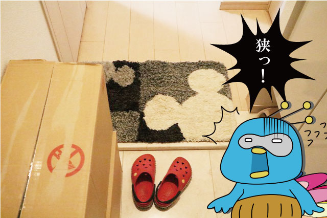 それが2つも積んであるせいでスペースが大幅に圧迫されてるから、実際より狭く感じてしまう玄関。
